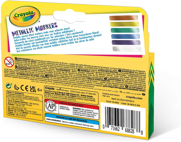 Crayola Metallic Markers - Assorted Colours Pack of 6 Ideal for Kids