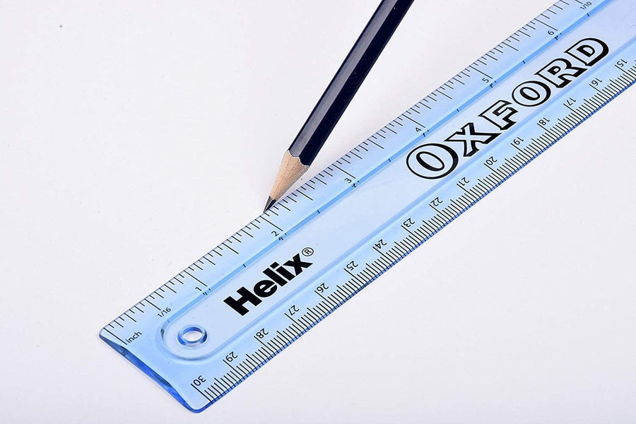 Helix Left-handed Ruler 30cm / 12" Transparent Blue Plastic How is this ruler lefthanded ? All our Left-handed rulers are scaled from right to left - i.e. 30cm on the left hand side with 0 cm on the right. This makes it easy to draw accurate, straight lines without obscuring the ruler markings when using your left hand - ideal for school, home & workplace. Features: Blue transparent plastic with metric & imperial graduations running right to left Centimetres & millimetres along the top edge / Inches (in 1/16th) along the bottom edge Shatter resistant - making it longer lasting & hard wearing Made by Maped Helix - the leading name in the UK stationery market