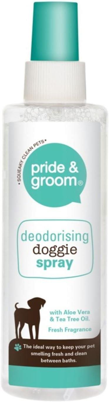 Pride & Groom Deodorising Spray 200ml Pride & Groom Deodorising Spray is an easy way to freshen your pet's coat. Spray a generous amount directly onto pet's coat. The ideal way to keep your pet smelling fresh and clean between baths.