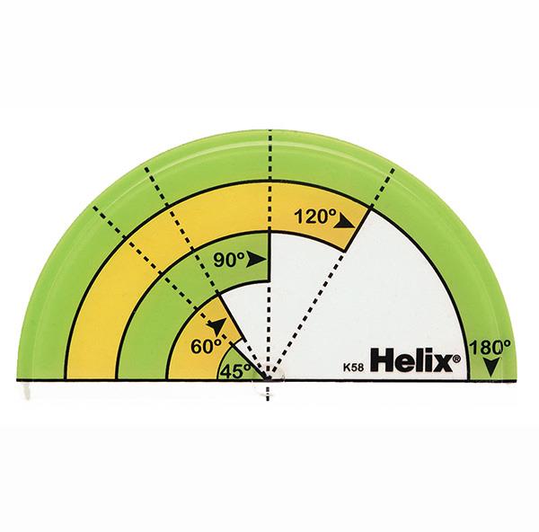 10cm 180° primary protractor, introduces pupils to the concept of angles and picturing their shape/slice. Key angle segments of 45°, 60°, 90°, 45° & 180°.